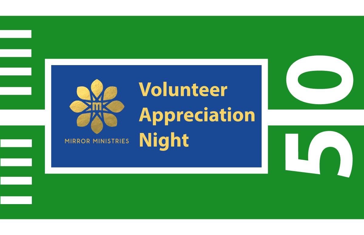 It is a Volunteer Appreciation Night for our Mirror Ministries Team! We are your biggest fans!! Please come join us for a fun and inspiring evening -- we really want to see you there! (And you want to see what our awesome Board Members have planned for the Fan Appreciation Night!!)